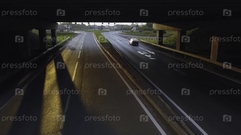 С точки зрения автомобиля, который едет под мостом на рассвете