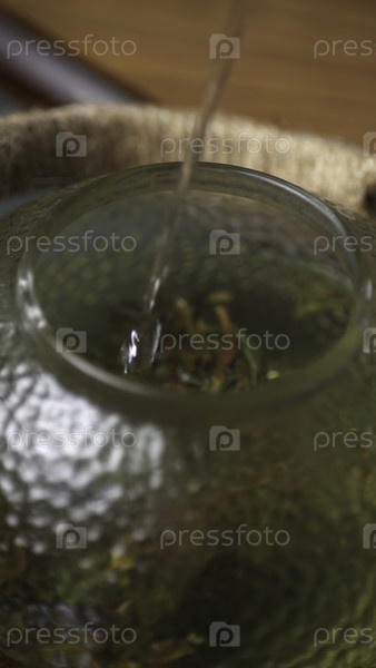Осторожно наливать горячую воду в элегантный чайник, чтобы заварить восхитительную инфузию