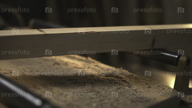 Последнее прикосновение к изготовленной деревянной доске, полировке и осмотру древесной поверхности в условиях мастерской