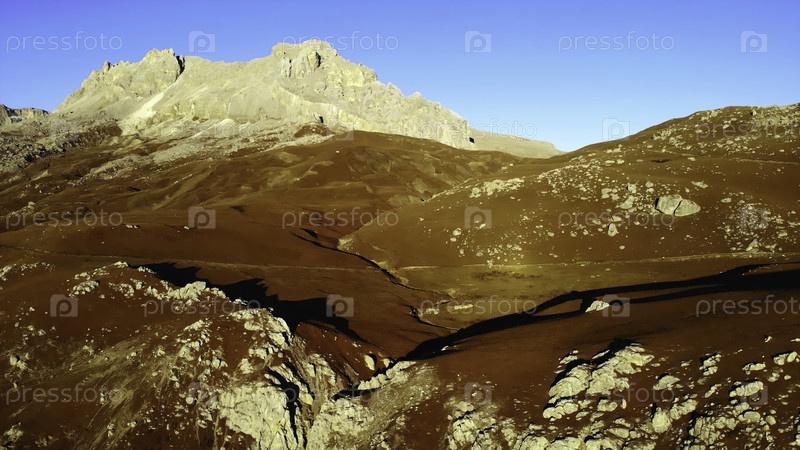 Вид с воздуха пейзажа альпийского горного перевала на восходе солнца
