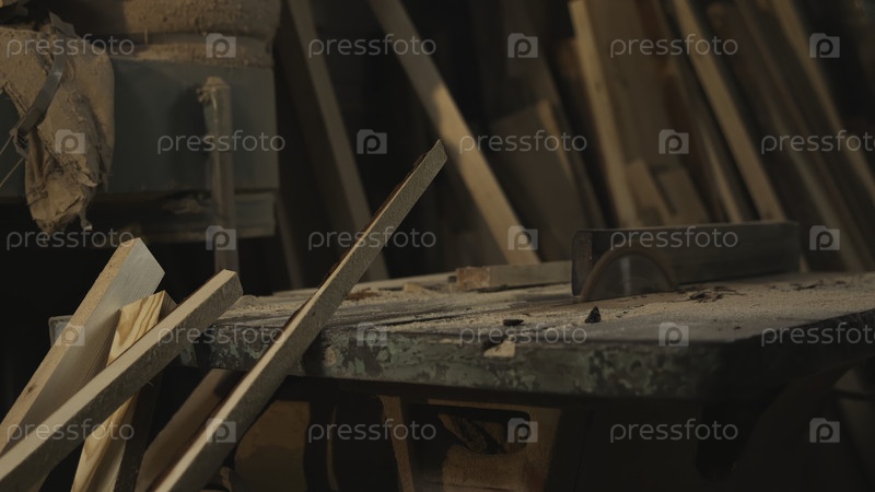 Разнообразные деревянные полоски и панели расположены рядом с песчаным инструментом на твердой поверхности рабочего пространства