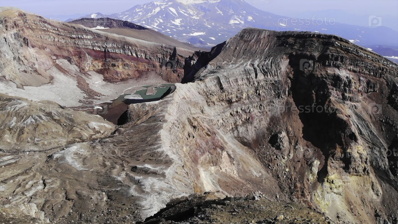 Вид с воздуха вулканического кратерного озера в Камчатке