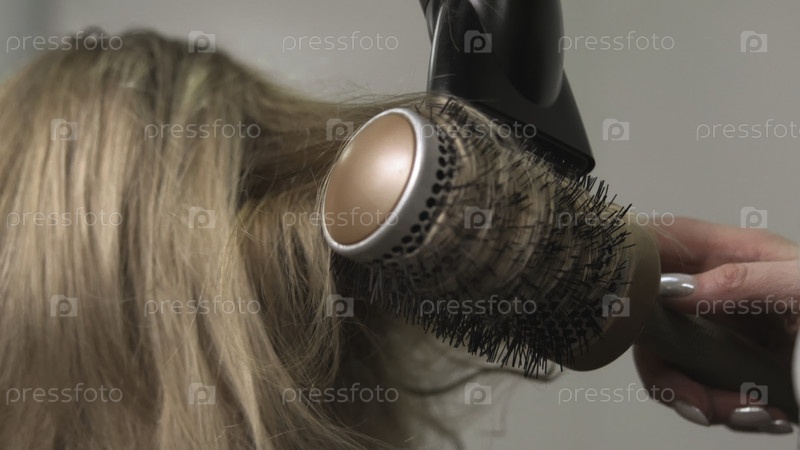 Щетки стилизуют волосы с блеском и подъемом, ближайший взгляд на профессиональную технику сушки для объема
