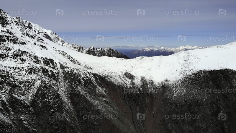 Снежные горные вершины приближаются к величественным пейзажам