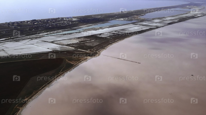 Розовое соленое озеро и соляные болота, вид с воздуха.СМИ