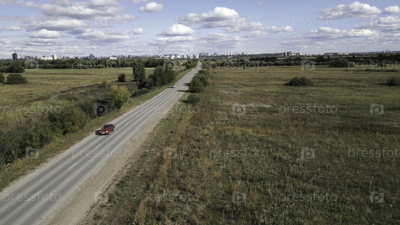 Красивый и живописный вид на длинную автомагистраль, простирающуюся бесконечно через открытые поля под солнечным небом