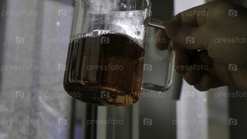 В видео изображено безмятежное приготовление чая, начиная с кипящей чашки и тщательно наливая его из чайника, демонстрируя спокойствие и наслаждение