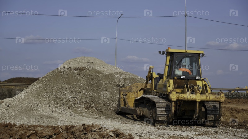 Бульдозер толкает гравий на стройплощадке
