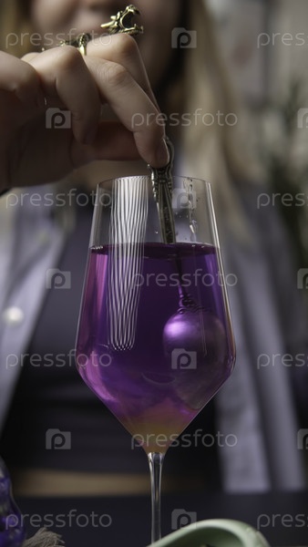 Художественная рука выжимает кусочек лимона в ярко-синий коктейль для захватывающего, освежающего поворота