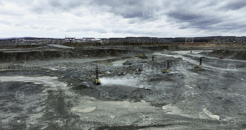 Майнинг карьера с использованием тяжелой техники и пыли