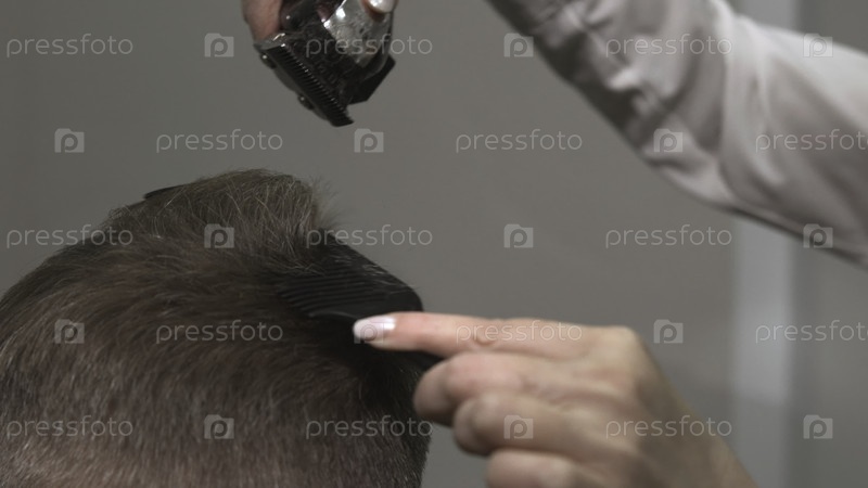 Стилист подстригает волосы ножницами, белая женщина получает текстурированную прическу с помощью профессиональных инструментов