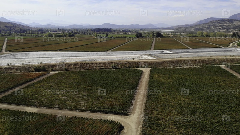 Вид с воздуха на виноградники и оросительные водоемы