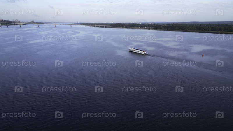 Пассажирский паром, плавающий по спокойным речным водам недалеко от города