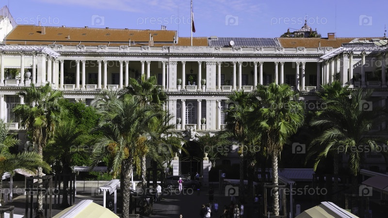 Французский флаг размахивает на здании префектуры в Ницце, Франция