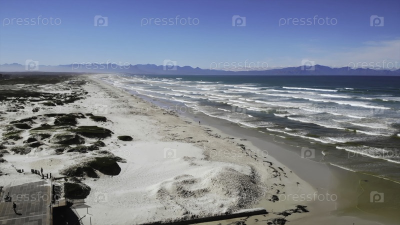 Живописная морская перспектива с воздуха, беспрепятственный снимок дрона, захватывающий прибрежную сцену с дюнами и морем