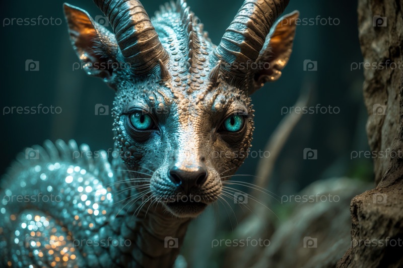 Фантастическое мифологическое животное из сказки, опасный зубчатый дракон с крыльями AI Generative