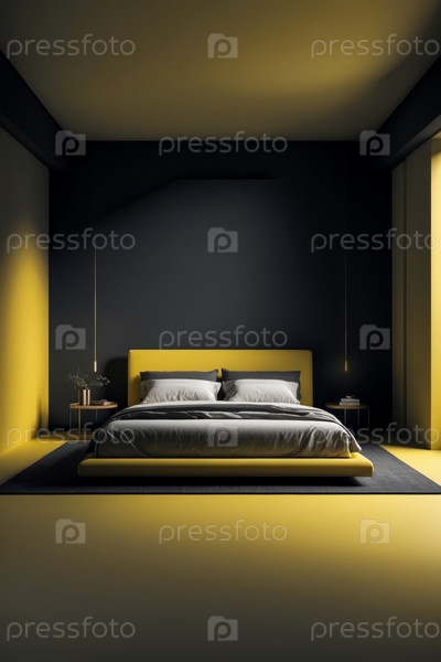 ИИ генеративный современный уютный интерьер спальня квартирная комната желтый цвет, комфортный дизайн дома