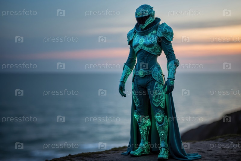 Человек-гуманоид в футуристическом космическом костюме, человек на будущем научном фантастическом завтрашнем фоне AI Generative