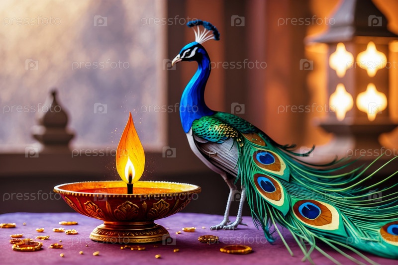 AI Generative Thaipusam Индуистский праздничный поздравительный фон с павиным перцем и масляной лампой