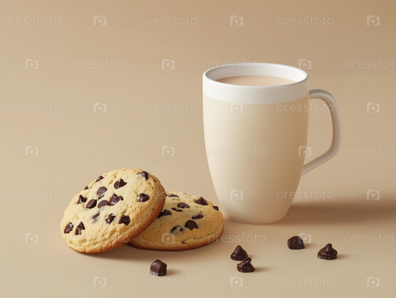 Шоколадные печенье с кофейной кружкой на бежевом фоне