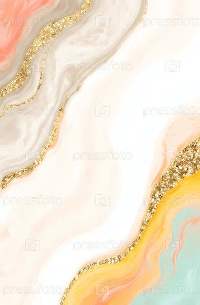Мягкие вихри пастельных цветов переплетаются со сверкающими золотистыми акцентами на гладком холсте, захватывая момент художественного творчества в спокойной атмосфере студии Generative AI