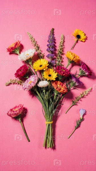 Потрясающая аранжировка демонстрирует цветы астры, герберы и хризантемы в ярких оттенках Generative AI