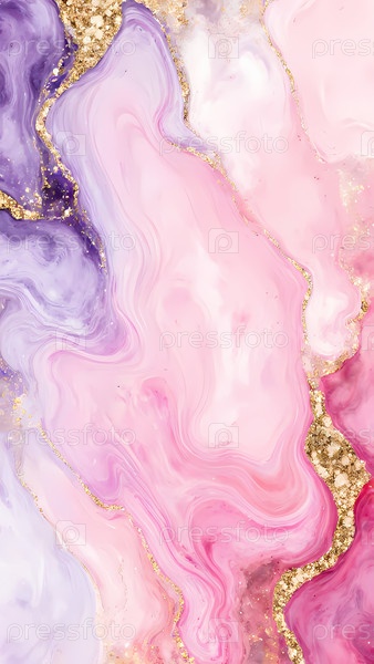 Богатые оттенки розовых и фиолетовых цветов грациозно протекают, перемещенные искрящимися золотыми линиями Generative AI