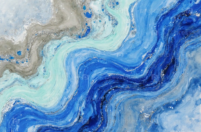 Потрясающая композиция текущей алкогольной чернил создает очаровательные волны синего и бежевого, подчеркнутые золотыми выделениями, вызывая чувство спокойствия и безмятежности Generative AI