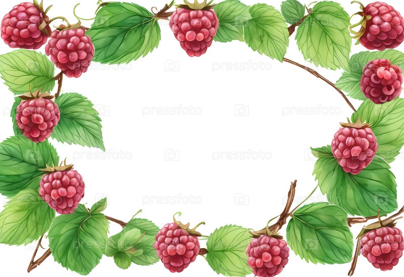 Этот очаровательный акварельный макет имеет пышные малиновые плоды и яркие зеленые листья, окружающие пустое пространство, идеально подходит для приглашений или творческих художественных проектов, которые вызывают радость