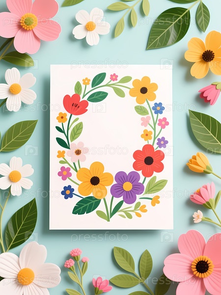 Красивая открытка, украшенная красочным цветочным дизайном сидит на спокойной бирюзовой поверхности Generative AI