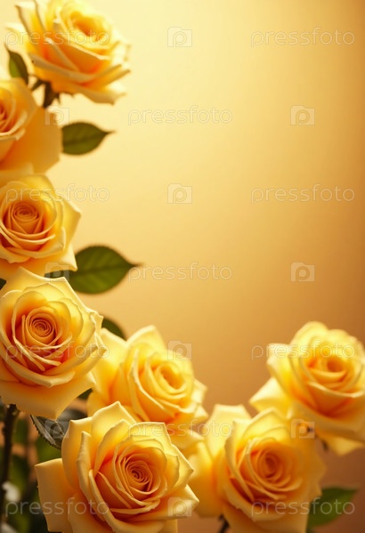 Нежные желтые розы цветут ярко, создавая захватывающее отображение тепла и красоты. На фоне блестящего боке-фонда, который блистает мягкими золотыми оттенками. Чувство магии. Пустое пространство. AI