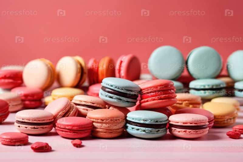 ИИ генеративная французская кухня кондитерские изделия макаронные печенье на столе, натюрморт вкусных цветовых булочек