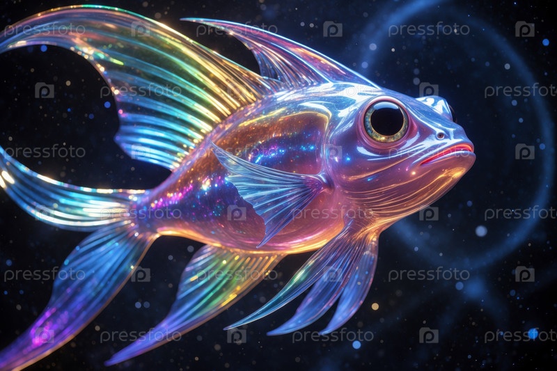 Генеративная ИИ Фантастические цветные рыбки плавают в глубине моря, аквариум водный крутые животные в воде