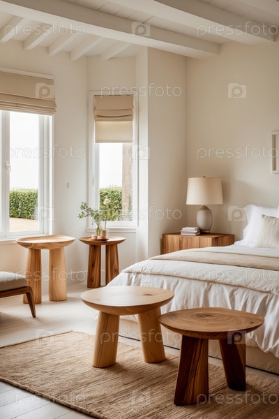 Уютный интерьер спальня Квартирная комната бежевый цвет, комфортный дизайн дома ИИ генеративный современный