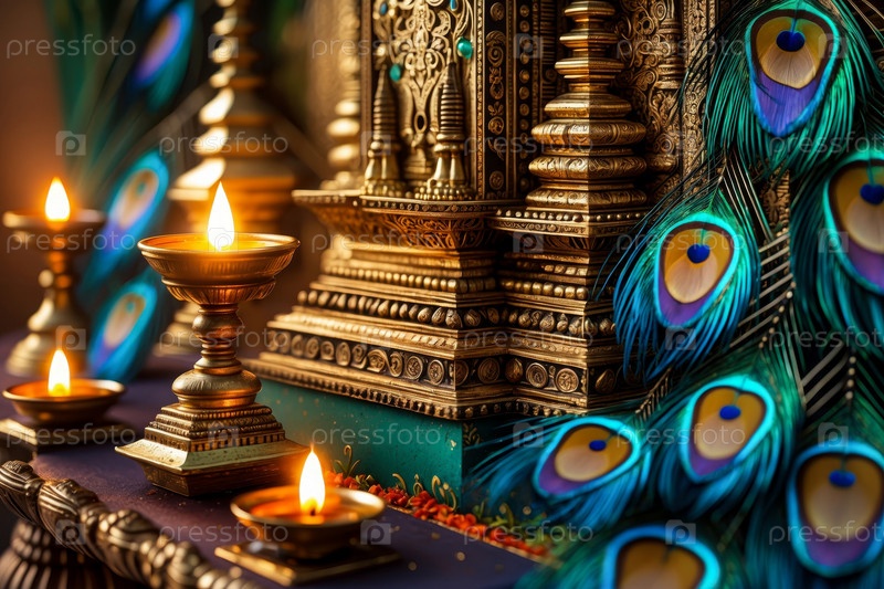 AI Generative Thaipusam Индуистский праздничный поздравительный фон с павиным перцем и масляной лампой