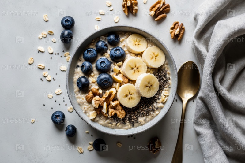 AI Generative Granola oatmeal с йогуртом, ягодами и фруктами, традиционный здоровый вегетарианский завтрак