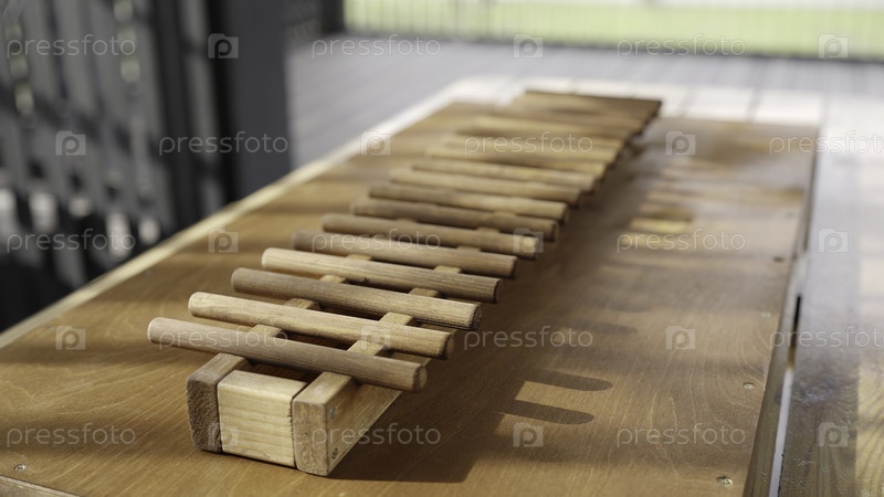 Деревянный инструмент с вытянутыми прутьями, опирающимися на стол, идеально подходит для эстетических и музыкальных композиций