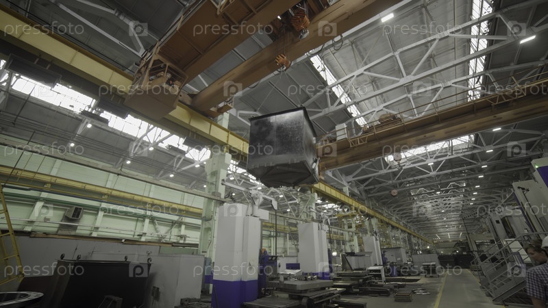 Потрясающий панорамный вид, демонстрирующий оживленное производственное предприятие с воздушным краном в действии