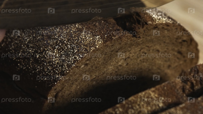Человек нарезает свежевыпеченный ржаной хлеб.СМИ
