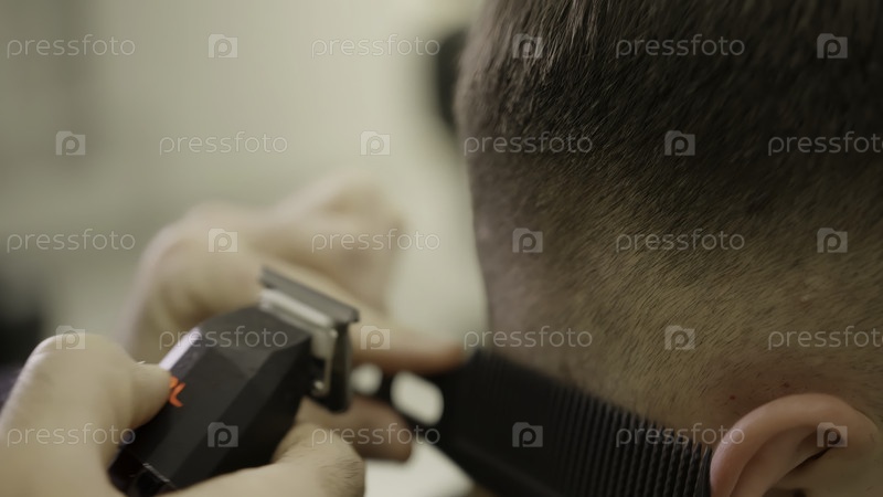 Парикмахер, стригущий клиента с помощью ножницы и гребля