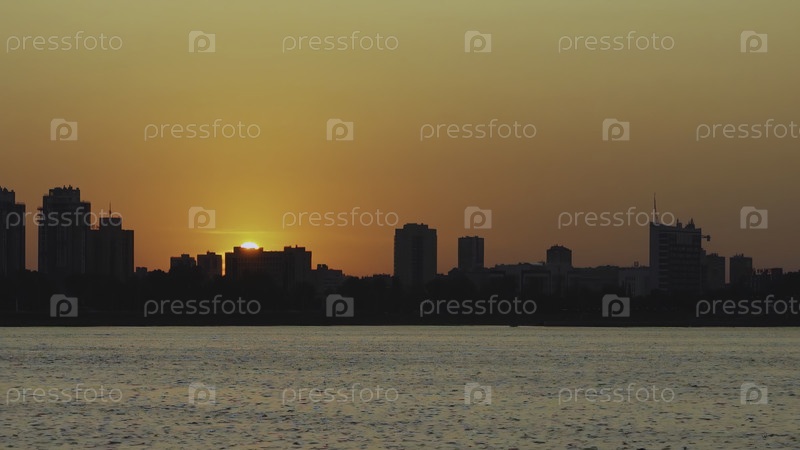 Почувствуйте потрясающую красоту заката, отражающегося на ярком городском горизонте