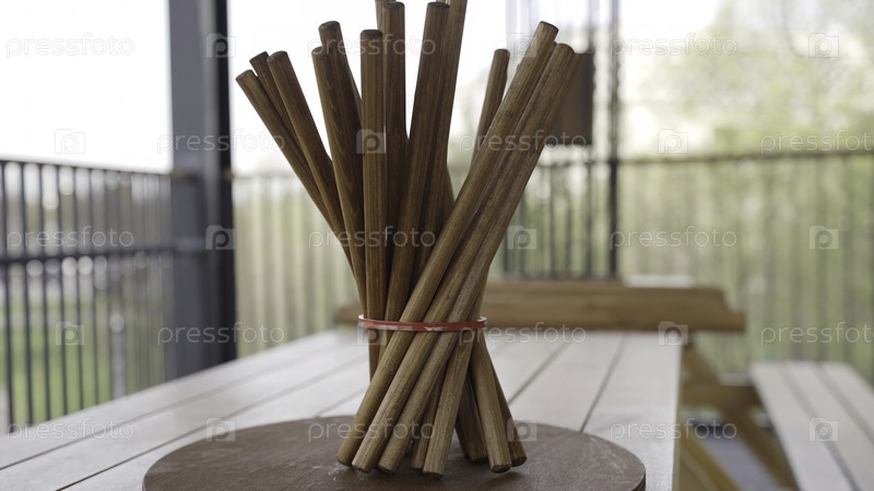 Это видео подчеркивает элегантное расположение палочек на деревянном столе, демонстрируя их дизайн, текстуру и культурное значение