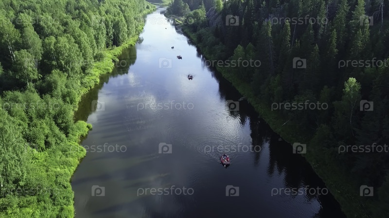 Река Серена изящно течет через красивый пышно-зеленый лесный пейзаж