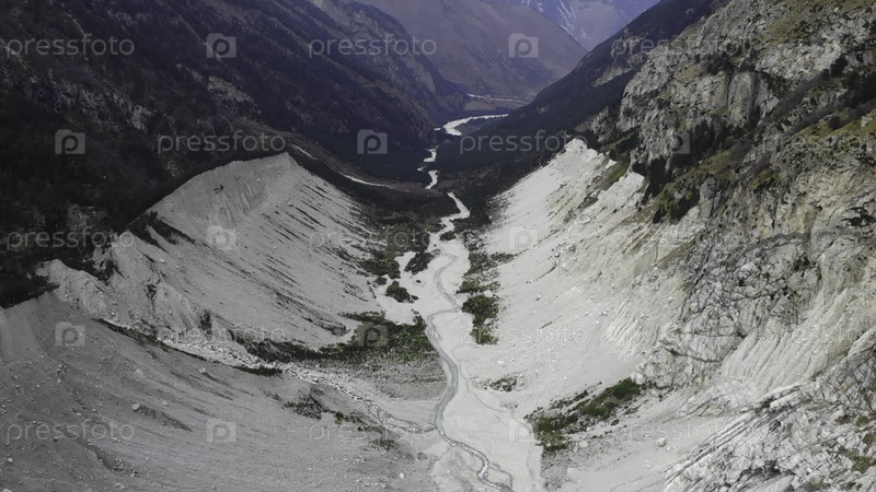 Вид с воздуха, летящий через горную долину реки Горж