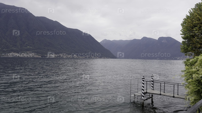 Почувствуйте захватывающий взгляд на Тихое озеро, окруженное величественными горами с прекрасным доком