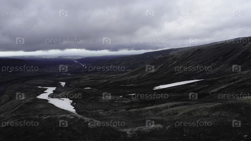 Вулканическое исландское высокогорье пейзаж с воздушного вида.Медиа