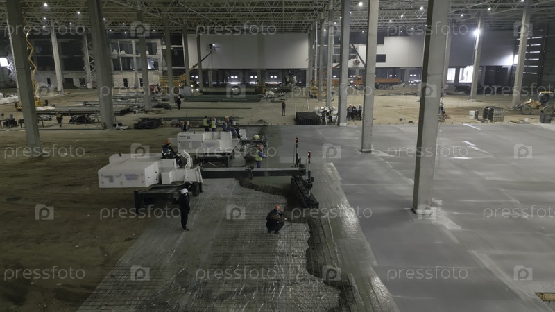 Тбилиси, Грузия - июль 2024 года: лазерная screed-машина наливает бетонный пол на строительной площадке