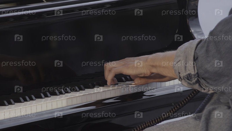 Ближайший снимок рук пианистов, умело играющих красивую и очаровательную мелодию на рояле
