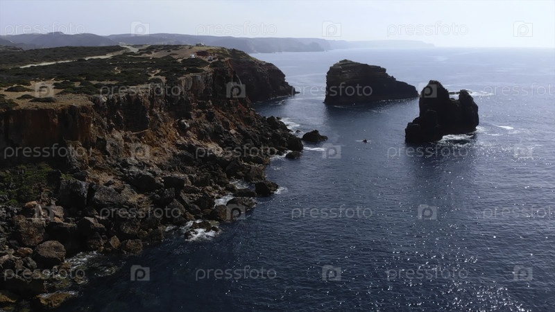 Драматические скалы и двойные монолиты, аэрофотосъемки демонстрируют поразительные красные скалы и океанские просторы