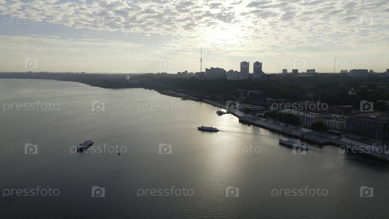 Пассажирский паром, покидающий городские доки Воронежа на рассвете